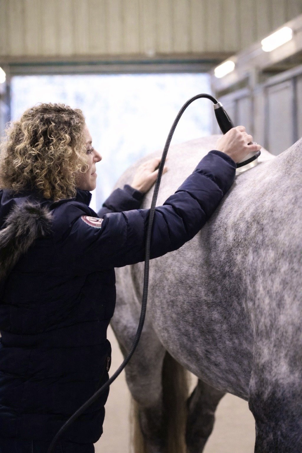 FES is a physiotherapy treatment that helps improve and restore normal muscle function and provide pain relief by reducing inflammation, maintaining muscle mass, reducing scar tissue, and improving range of motion. The computer-regulated electrical impulses can be applied to the neck, back, and pelvis, especially while a horse is resting and rehabilitating from an injury, and as a maintenance treatment to promote optimum performance.